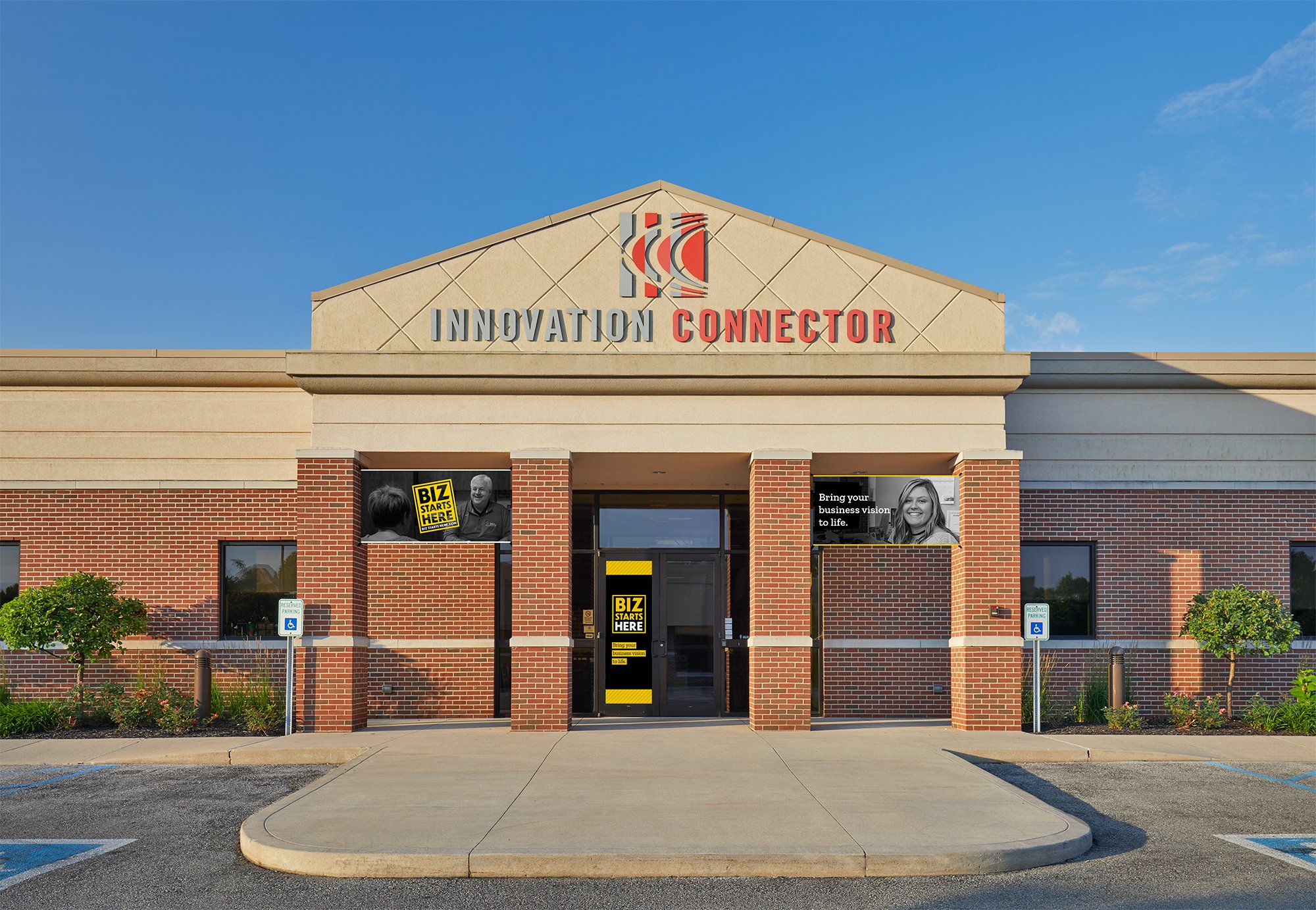 The Biz Starts Here campaign was created for an already thriving business, the Innovation Connector, as a way to refresh and remind their audience of their core mission. The fonts, colors, patterns, and usage were all designed to work in tandem with the existing Innovation Connector brand, while also bringing a new energy.